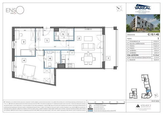 ENSO is being developed on Branickiego Street, in the southern part of Miasteczko Wilanów, on one of the last undeveloped plots in the area. It is a neighbourhood with elegant residential buildings and a well-developed service and commercial infrastructure. ENSO Apartments are distinguished by elegant architecture, modern technological solutions and ecology, including: BREEAM at the Very Good level, photovoltaic panels, the possibility of recovering electricity and rainwater, car parks with an electric charger, playgrounds and green areas with rain gardens.