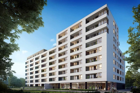Design, prepared by renowned studio HRA Architekci, envisages the erection of coherent development consisting of two buildings with an outer courtyard, creating a friendly, carefully designed space with outdoor furniture and ornamental greenery. A characteristic element of the design consists in half-open, elegant entrance zone separating public part and private patio. Central part of the residential estate will be covered by a square with trees and bushes and designated kids and adults zones.
