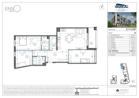 ENSO is being developed on Branickiego Street, in the southern part of Miasteczko Wilanów, on one of the last undeveloped plots in the area. It is a neighbourhood with elegant residential buildings and a well-developed service and commercial infrastructure. ENSO Apartments are distinguished by elegant architecture, modern technological solutions and ecology, including: BREEAM at the Very Good level, photovoltaic panels, the possibility of recovering electricity and rainwater, car parks with an electric charger, playgrounds and green areas with rain gardens.
