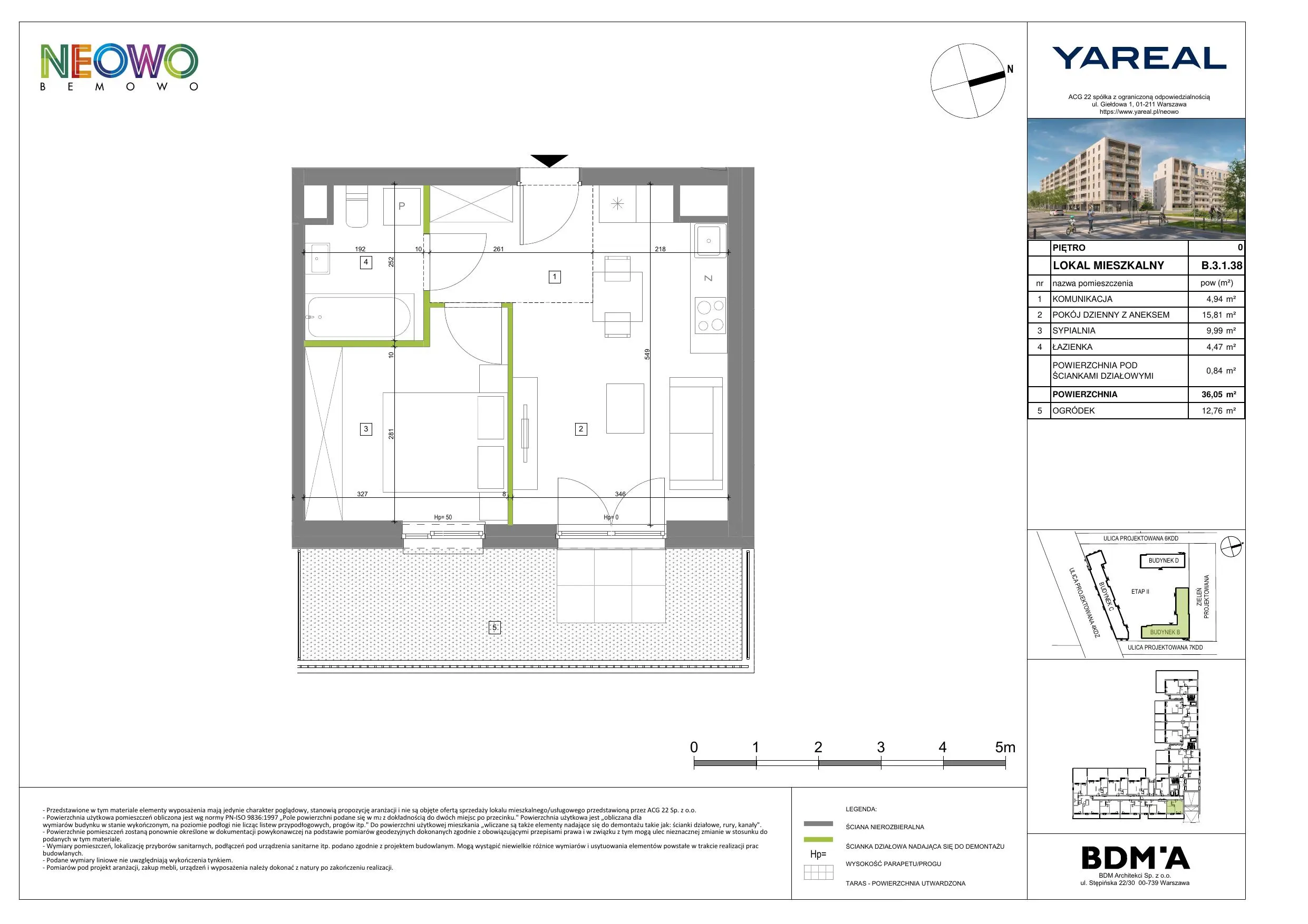- Square metres ? Usable area calculated according to PN ISO 9836:1997, including the area under walls () that can be dismantled. 36,05m2