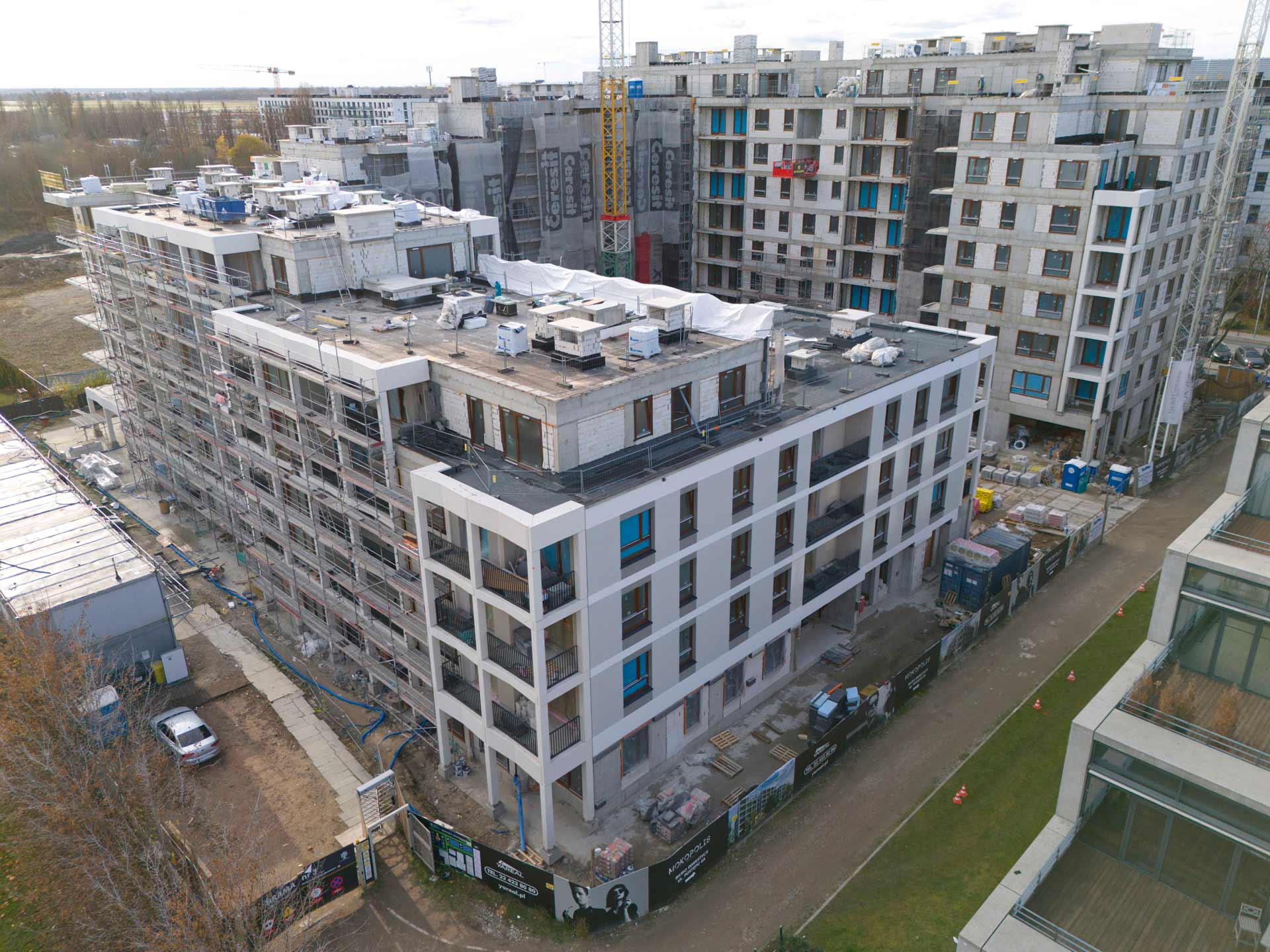 Architektura MOKOPOLIS czerpie z industrialnego dziedzictwa Służewca. Uwagę przykuwa nowoczesny design elewacji, a ażurowe barierki dodatkowo wzmacniają efekt lekkości i świetlistości bryły. Budynek o wysokości od czterech do dziewięciu kondygnacji oferuje 205 mieszkań o powierzchni od 29 m2 od 120 m2. Wszystkie z optymalnie zaprojektowaną przestrzenią i dużymi, drewnianymi oknami. Lokale na parterze dysponują ogródkami, zaś na piętrach loggiami lub balkonami. Część mieszkań na ostatnich kondygnacjach posiada rozległe tarasy.